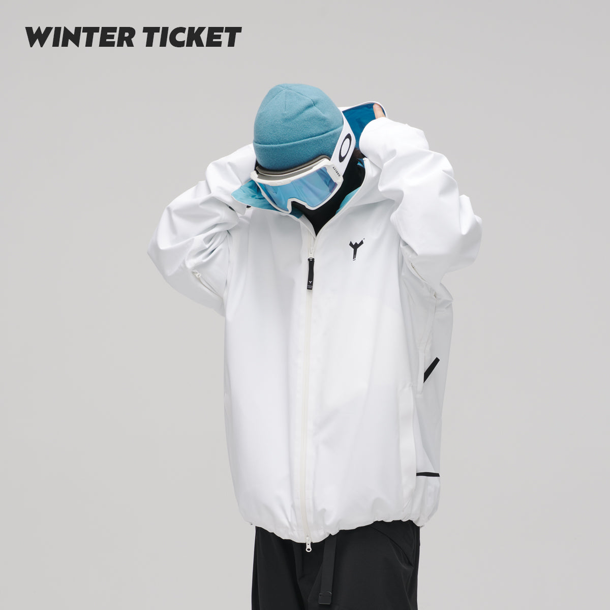 WinterTicket双单板自由式OVERSIZE宽大嘻哈白色滑雪3L夹克雪服