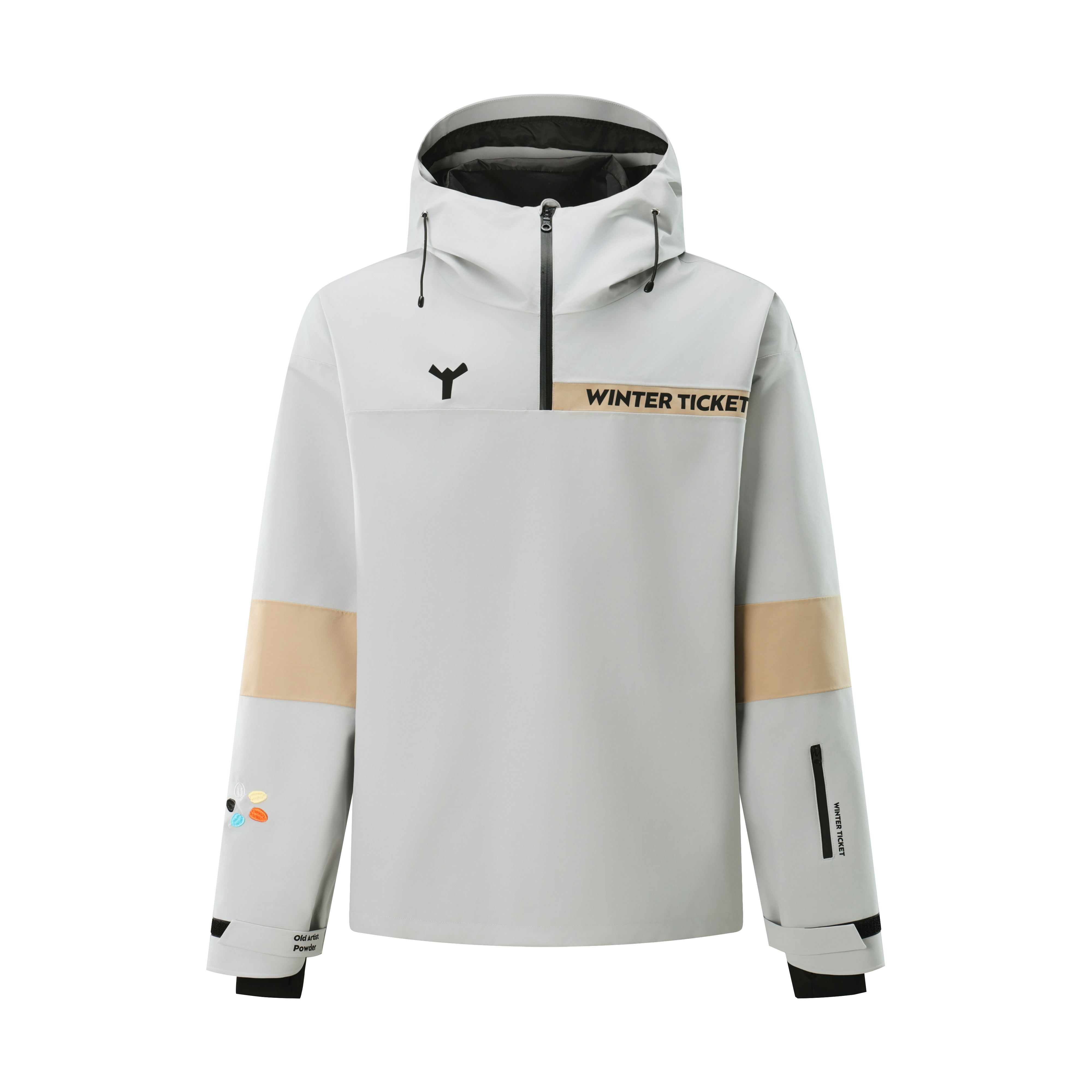 WinterTicket Ski/Snowboard Freestyle Oversize Grey-Brown Baggy Hip-Hop 3L Pullover Snow Jacket